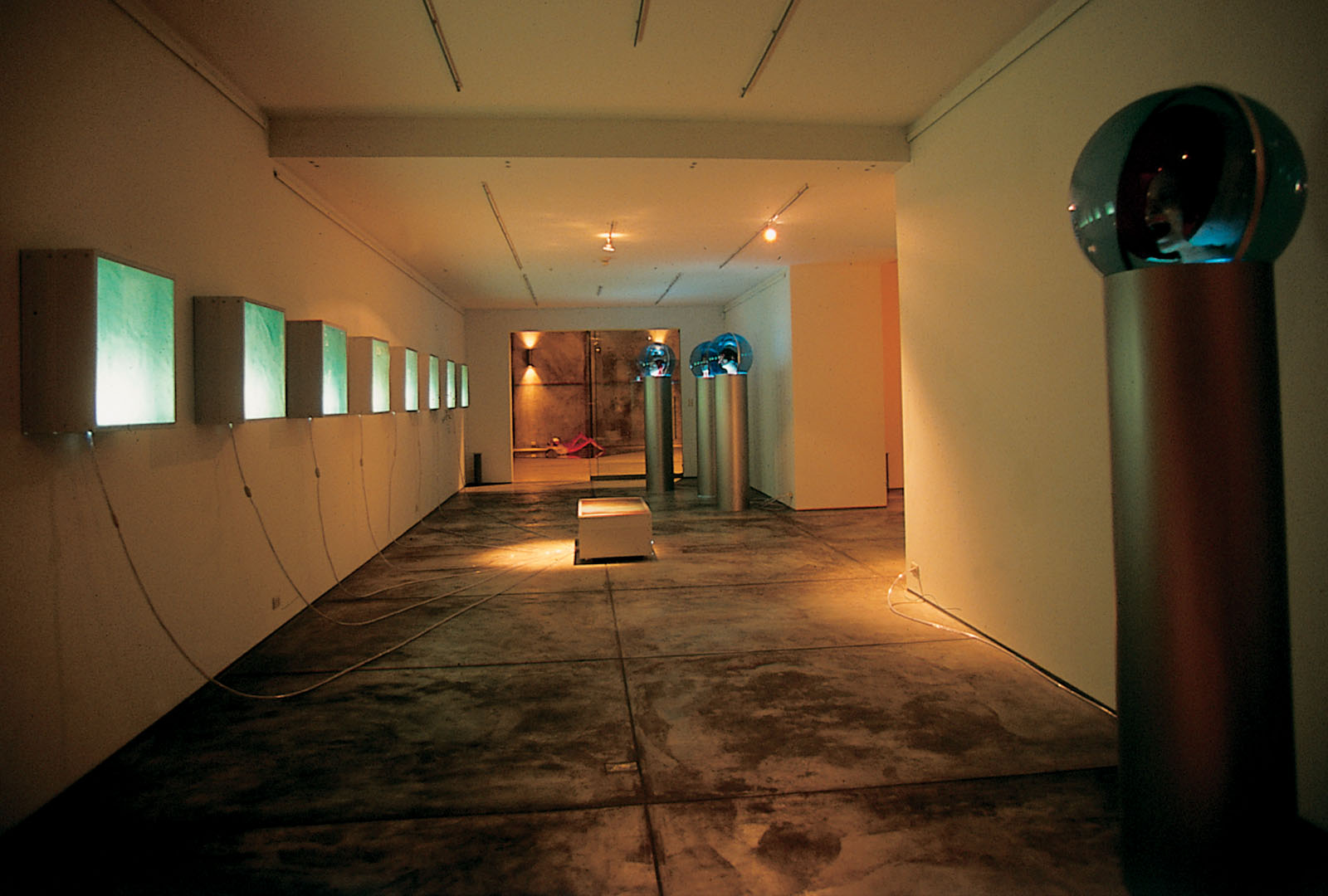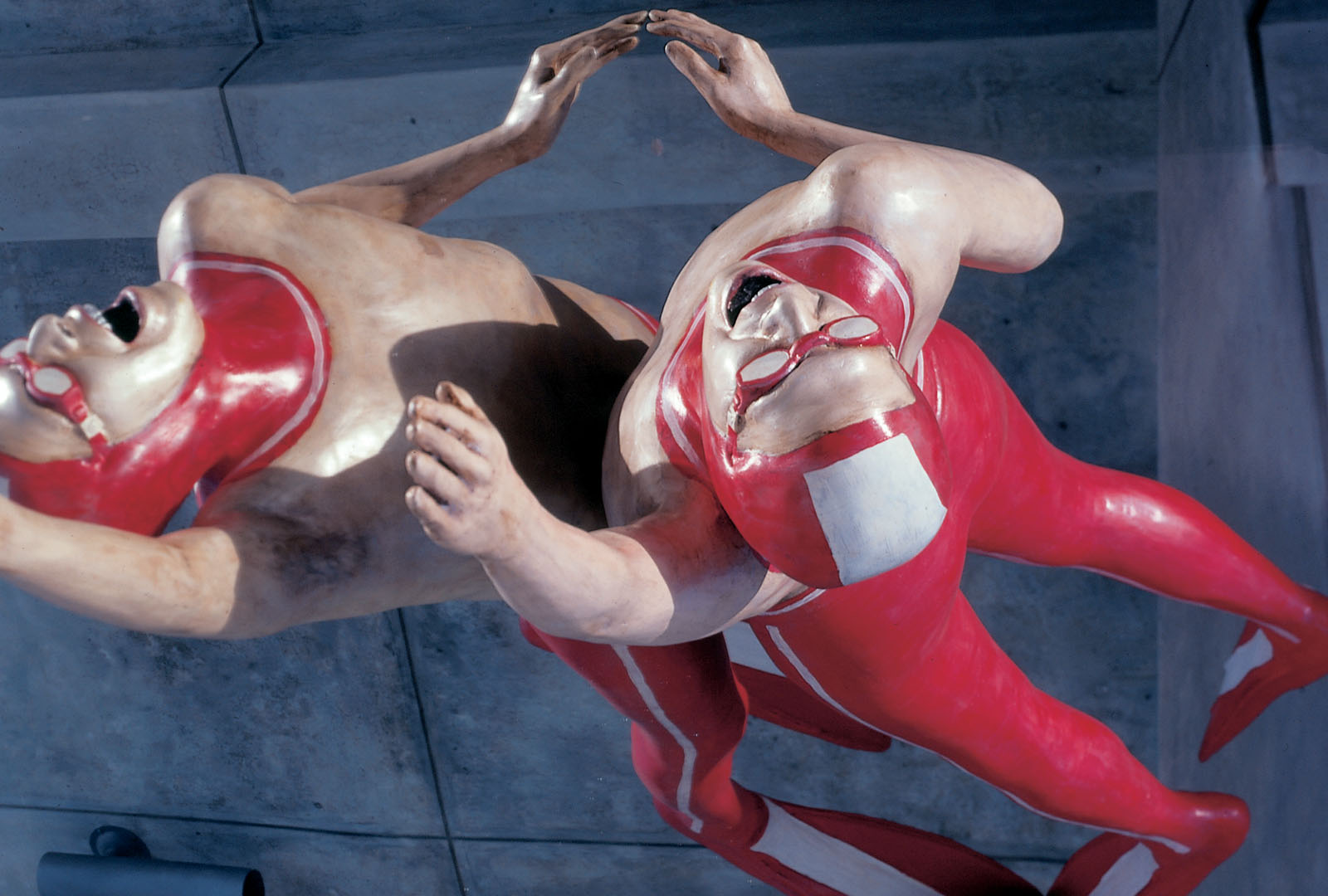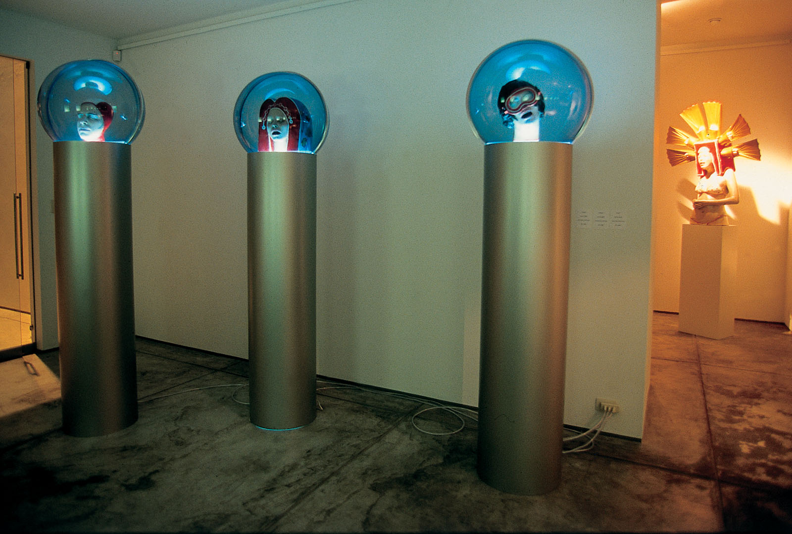 Para su primera muestra individual Cristina Planas transformó una galería en una inmensa pecera, y dentro de ella, colocó seres a medio camino de evolución de lo humano a lo anfibio.